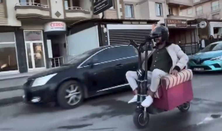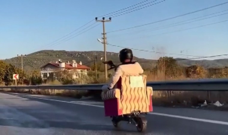 Muğla’nın Menteşe ilçesinde scooter üzerine yerleştirdiği koltuğun üzerine oturup trafiğe çıkıp yolculuk yapan şahsın sosyal medya görüntüleri dikkat çekerken, trafik ekipleri şahsa 3 bin 12 Lira para cezası uyguladı.