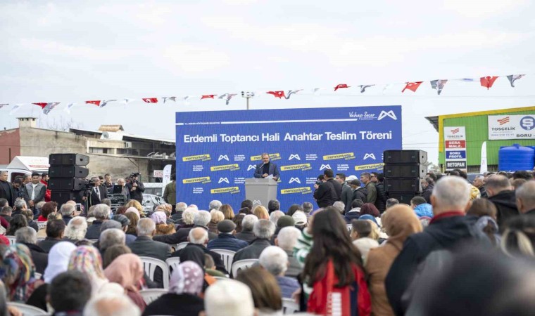 Mersin Büyükşehir Belediye Başkanı Vahap Seçer, temeli 16 yıl önce atılan ve çalışmaları Büyükşehir Belediyesi tarafından yeniden başlatılan Erdemli Toptancı Hal Kompleksinin anahtar teslim törenine katıldı.