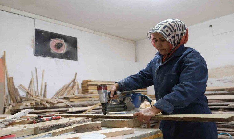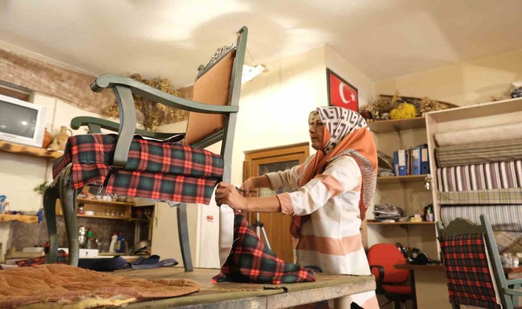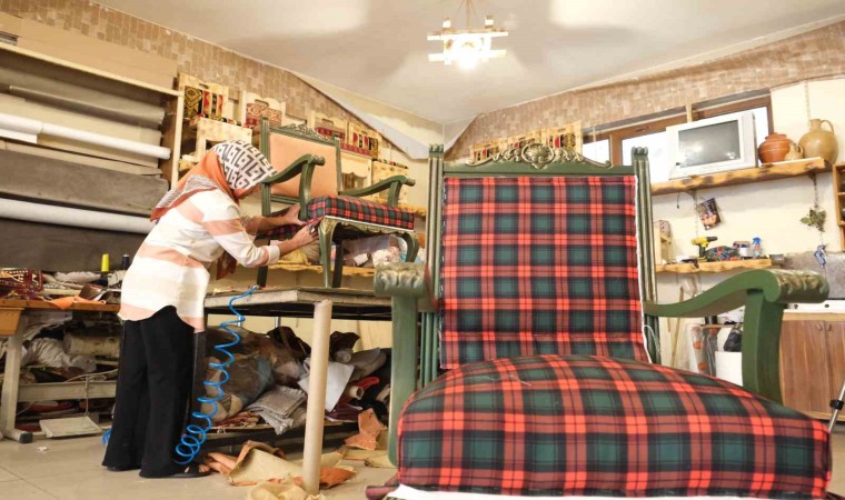 Erzincan’da 14 yıl önce kendi imkânıyla kurduğu işletmesinde sedir, şark köşesi ve sandalye gibi ahşap ürün imalatı yapan kadın girişimci tek başına hem üretim hem de döşeme tamiri yaparak ev ekonomisine katkı sunuyor.