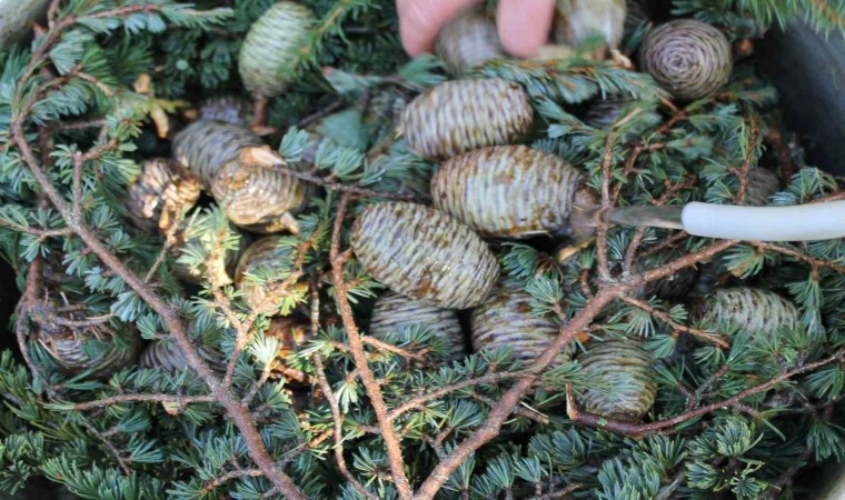 Adana’nın Aladağ ilçesinde orman kesim sahalarından bin bir emekle çuvallara toplanan sedir kozalakları soğuk kış günlerinde herkese şifa oluyor.