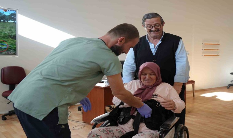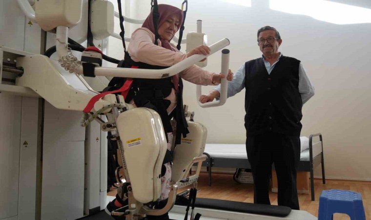 Hasan Şahin, “Kurban Bayramı’nın birinci günü eşimin iki eli ve iki ayağı felç oldu. Sonra ambulans çağırdık. Akyazı devlet hastanesine gittik. Oradan bizi Sakarya’ya sevk ettiler. Araştırma hastanesindeki bizi muayene edecek doktorumuz izinliymiş. Doktoru aradılar hemen gelerek eşime ilk müdahaleyi yaptı. Teşhisleri konuldu ve bir hafta boyunca sıkı bir müşahede altında tuttular. Sakarya’da 1 ay kaldıktan sonra bizi eve gönderdiler, evde eşimin yanına hiç ziyaretçi almadık. İlaçlarla tedavi devam etti. 3 ay boyunca ilaç tedavisi gördü. Sonrasında ise Bolu Fizik Tedavi Hastanesi’ni tavsiye ettiler. Buraya geldik muayenemizi yaptırdık kayıt işlemlerini yaptırdık. Burada yapılan tedavilerle kısa süre içerisinde çok iyi netice aldık. Şuanda eşim yürüyüş robotunu kullanıyor. Robot sayesinde beynine emir veriliyor. Artık son aşamaya gelindi, yavaş yavaş ilk adımlarını atmaya başladı. Buraya ilk geldiğimizde eşim yatalaktı. Çok iyi geldi bu hastanedeki tedavi. Allah devletimize zeval vermesin. Mutluyuz. Hastalık süresi boyunca seve seve ilgilendim eşimle. Eşimi bu dereceye getiren biraz da kendi emeklerim” dedi.
