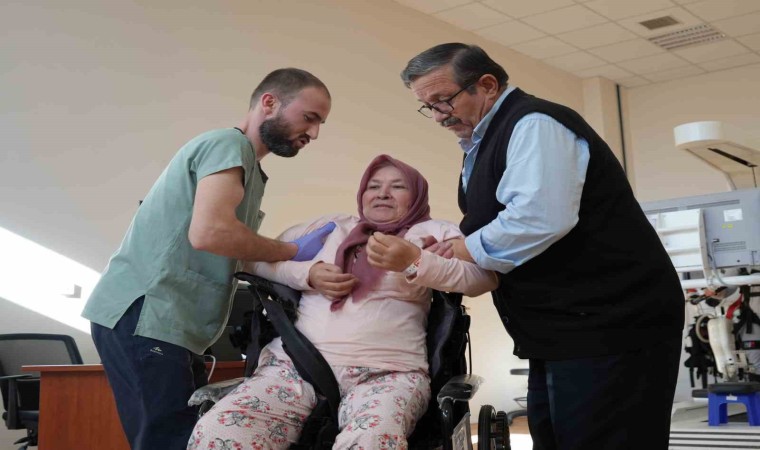 3 aylık tedavinin ardından ilk adımlarını atmanın mutluluğunu yaşadığını ifade eden Fatma Şahin, “6 aydır felçliyim. Buraya sedye ile geldim. Çok şükür şimdi yürümeye başladım. 3 ayda ilk adımlarımı atmaya başladım. Robot yürüme makinesi yürümeme çok faydalı oldu. Eşim de yanımdan hiç ayrılmadı. Hep destek oldu. İki elim ve iki ayağım felçliydi. Şuan hareket ediyorum. Adım atabiliyorum. Çok mutluyum. Allah razı olsun devletimizden, doktorlarımızdan. Yatalak olarak geldiğim hastaneden yürüyerek çıkmak istiyorum. Allah’ın izniyle” diye konuştu.