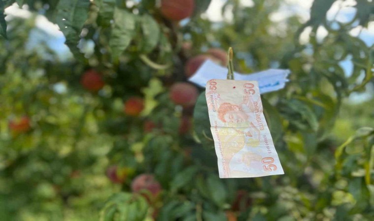 Bursa’da şeftali ağacına asılı bulunan "5 adet şeftali ve 2 salkım üzüm aldık. Hakkınızı helal edin" notu duygulandırdı. Üzüm ve şeftaliyi alan kişinin, notun yanına ayrıca 50 lira bırakması dikkat çekti.