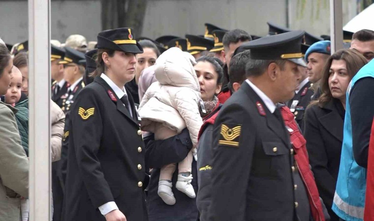 Bursa’da şehit olan Jandarma Uzman Çavuş Nurettin Yaşar’ın 8 aylık kızı Nare Lina, her şeyden habersiz törende yerini aldı. Babasının Türk bayrağına sarılı tabutuna ve silah arkadaşlarına bakınan Nare Lina, en sonunda annesinin kucağında uyuyakaldı.