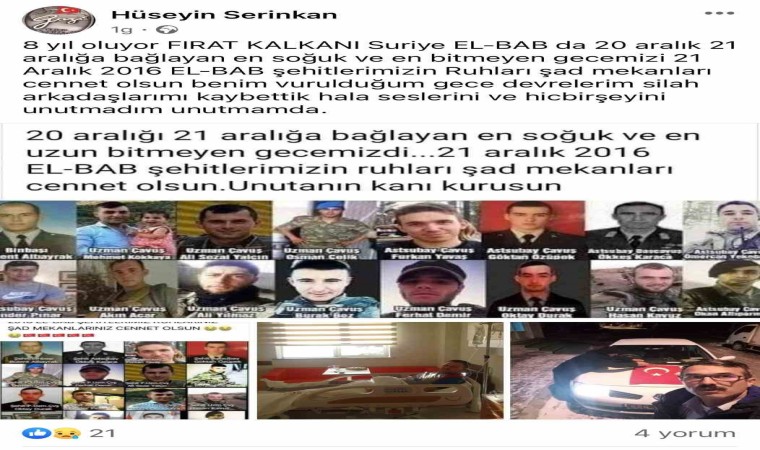 Dün akşam saatlerinde çıkan çatışmada şehit düşen Mehmet Serinkan’ın 2016 yılında yaralanan ağabeyi Hüseyin Serinkan’ın bir gün önce sosyal medya hesabı üzerinden yaralandığı çatışmada şehit düşen arkadaşlarını yad ettiği görüldü.