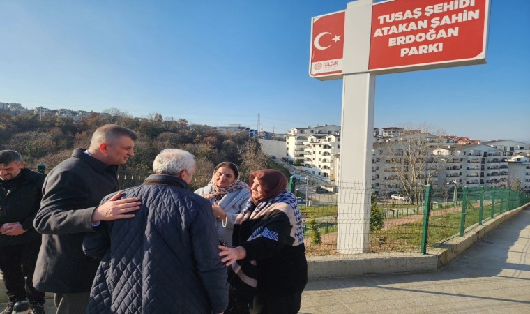 Ankara’da, Türk Uçak Sanayii Anonim Ortaklığı’na (TUSAŞ), 23 Ekim 2024 tarihinde, bölücü, hain terör örgütü PKK’lı teröristlerce yapılan kalleş saldırıda, yaralı olmasına rağmen teröristi vurarak faciayı önleyen, Kahraman Güvenlik Görevlisi Atakan Şahin Erdoğan’ın ismi, savunma sanayimize Gölcük Askeri Tersanesi ile güçlü destek veren, Gölcük Belediye Meclisi’nin aldığı kararla, İlhan Tuğba ve Anafartalar Caddesi kesişimindeki 10 dönümlük parkta verilmişti.
