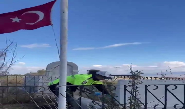 Erzurum’un Hınıs ilçesinde polis, Piyade Komando Er Yavuz Yürekseven’in kabrinin bakım ve temizliğini şehidin kardeşi Merve Yürekseven ile birlikte yaptı.