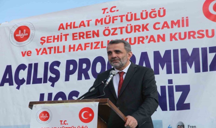 Van’ın Çaldıran ilçesinde 17 Ekim 2019 tarihinde çıkan çatışmada şehit olan Ahlatlı Piyade Uzman Çavuş Eren Öztürk’ün vasiyeti olarak inşasına başlanılan cami ve yatılı hafızlık Kur’an kursu tamamlanarak ibadete açıldı.