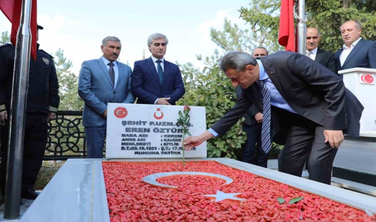 Daha sonra yapımı tamamlan Şehit Eren Öztürk Camii ve Yatılı Hafızlık Kur’an Kursu’nun açılışına katılan Vali Karaömeroğlu, burada bir konuşma yaptı. Vali Karaömeroğlu, bugün burada, yüce vatanımız için canını feda eden kahraman Şehidimiz Eren Öztürk’ün anısını yaşatmak, onun aziz hatırasına layık bir hizmette bulunmak amacıyla bir araya geldiklerini belirterek, “Açılışını yapmakta olduğumuz yatılı hafızlık Kur’ân kursu ve caminin yapımında maddî manevî desteği olan tüm hayır sahiplerine teşekkür ediyor, hayırlarının kabul ve makbul olmasını diliyorum. Bu hayırlı açılış vesilesiyle sizlerle birlikte olmaktan büyük bir memnuniyet duyuyor, hepinizi saygı ve sevgi ile selamlıyorum. Kur’an bizim gönüllerimizin ilacı Cenab-ı Hakkın rahmet olarak gönderdiği ve rehber kıldığı ilahi bir mesajdır. Kur’an-ı Kerim, kendisine başvurduğumuz sürece önümüzü aydınlatır, hakkı batıldan ayırmayı öğretir, bizi rahmete, berekete ve esenliğe ulaştırır. Sevgili Peygamberimiz de Kur’an okuyan ve hükümlerini öğrenenlerin faziletine dikkat çekerek, ‘Sizin en hayırlınız, Kur’an-ı öğrenen ve öğretendir’ buyurmuşlardır. Bu sebeplerle, açılışını gerçekleştireceğimiz Kur’an kursumuz ve camimiz, çocuklarımıza kutsal kitabımız Kur’an-ı Kerim’i doğru bir şekilde öğrenme imkanı sunarak, onları bilgiyle donatmanın ötesinde ahlaki değerlerle yoğurmayı hedeflemektedir. Gençlerimiz, bu mekanlarda hem dini eğitim alacak, hem de ahlaki değerlerle donanacaklardır. Onlardan beklentimiz, güzel ahlaklarıyla toplumumuza örnek olmalarıdır. Çünkü gençlerimiz, bilgiyle mücehhez, ahlaki değerlere sahip bireyler olarak geleceğimizi şekillendireceklerdir. Şehitlerimizin hatırasını yaşatmak, onların bizlere bıraktığı mirası en iyi şekilde değerlendirmek, millet olarak birbirimize kenetlenmek hepimizin sorumluluğudur. Bu anlamlı günde, dualarımızı Şehidimiz Eren Öztürk’e, onun gibi fedakarlıkla hizmet veren tüm şehitlerimize, gazilerimize ve aziz milletimize adıyoruz. Ruhları şad olsun, mekanları cennet olsun. Allah birliğimizi, beraberliğimizi daim etsin. Bu duygu ve düşüncelerle, bu kıymetli eserlerin inşasında emeği geçen herkese bir kez daha teşekkürlerimi sunuyor, ibadete açılan bu güzel camide ve Kur’an kursunda, rızasına muvafık ameller ifa etmeye bizleri muvaffak kılmasını yüce Rabbimden diliyor, hepinizi en kalbi duygularımla selamlıyorum” dedi.
