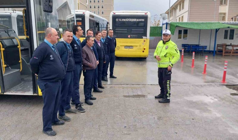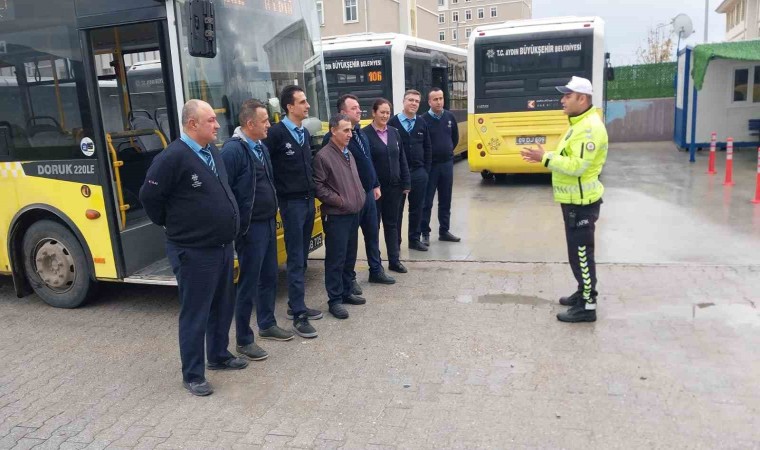 Aydın Trafik Denetleme Şube Müdürlüğü ekiplerince şehir içi şoförlerine yönelik yolcu indirme, bindirme, trafikte tabela okuma başta olmak üzere genel trafik eğitimi verildi.