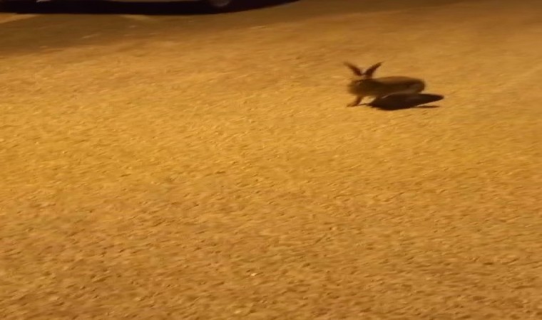 Karabük’te Şirinevler Mahallesi’nde de yaban tavşanı sokakta koşarken görüldü. Vatandaşın önüne kadar gelip bir süre bekleyen tavşanı daha sonra hızla koşarak gecenin karanlığında gözlerden kayboldu.
