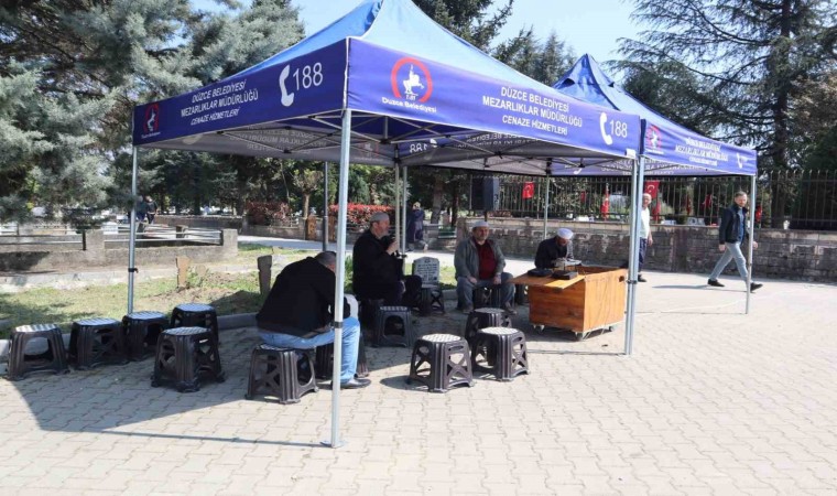 Düzce Belediyesi tarafından geleneksel hale getirilen ve Ramazan Bayramı öncesi gerçekleştirilen mezarlık mevlidinde görevliler tarafından Yasin-i Şerif okundu.