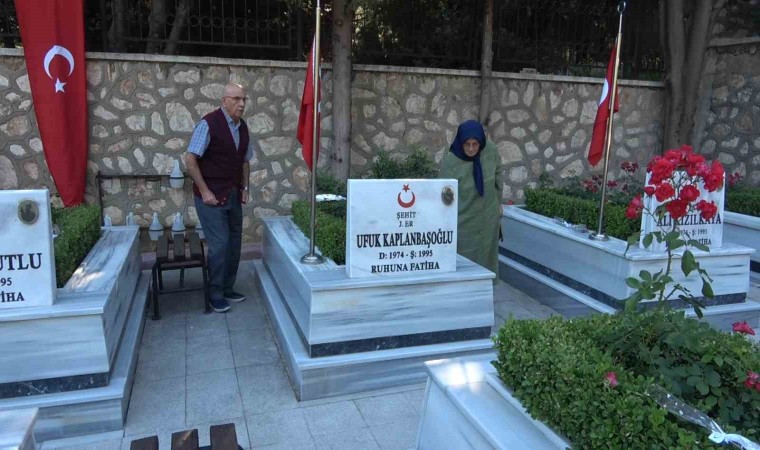 Bursa’da şehit yakınları bayram sabahının ilk saatlerinde şehitlikleri ziyaret etti. Şehitlerinin kabri başında Kur’an-ı Kerim okuyan aileler, daha sonra çiçekleri sulayarak mezar taşlarını temizledi. 1995 yılında Batman’da şehit düşen Jandarma Er Ufuk Kaplanbaşoğlu’nu ziyaret eden anne Nergis Kaplanbaşoğlu, oğlunun mezarını temizleyerek başında dua okudu.