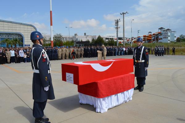 Şehidin Türk bayrağına sarılı cenazesinin tören alanına getirilmesinin ardından, 1 dakikalık saygı duruşunda bulunuldu ve öz geçmişi okundu. İl Müftüsü Ali Hayri Çelik'in duasının ardından Astsubay Üstçavuş Mehmet Gündüz'ün cenazesi, askeri uçakla memleketi Tokat'a uğurlandı. (DHA)