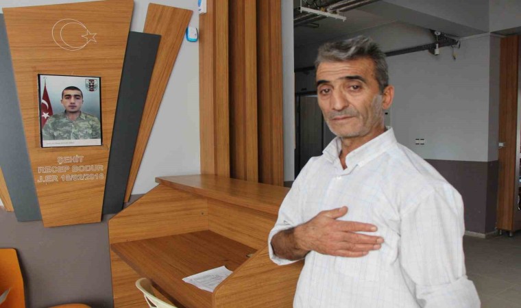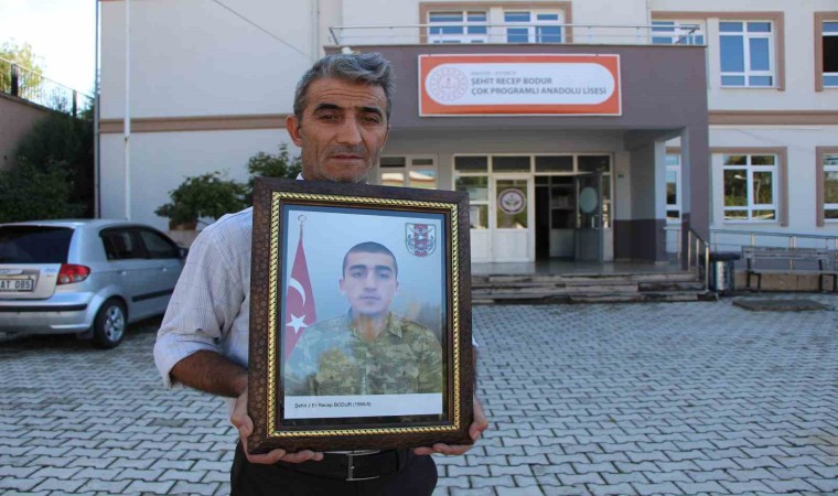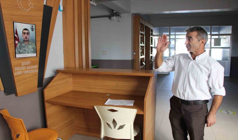 Amasya’da Şehit Recep Bodur’un babası Halil Bodur, evladının ismini taşıyan okulda görev yapıyor. Her sabah okula geldiğinde, 8 yıl önce şehit düşen oğlunun panoda asılı fotoğrafına gönül selamı vererek mesaisine başlayan baba, gurur ve hüznü bir arada yaşıyor.