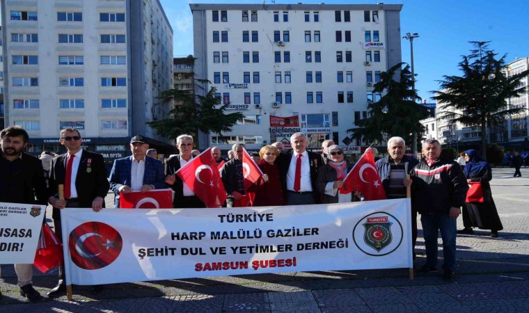 Türkiye Harp Malulü, Gaziler, Şehit, Dul ve Yetimleri Derneği Samsun Şubesi’nin çağrısıyla Cumhuriyet Meydanı’nda toplanan şehit aileleri ve gaziler, ‘Teröre Karşı Tek Ses, Tek Yürek’ temalı basın açıklaması düzenledi. Saygı duruşunda bulunulması ve İstiklal Marşı’nın okunması ile başlayan basın açıklamasında ilk konuşmayı Dernek Başkanı Necati Yılmaz yaptı.