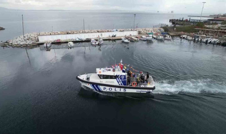 Yerli üretim ve 12 metre uzunluğa sahip Şehit Polis Mustafa Emanetoğlu adlı tekneye binen aile denize açıldı.