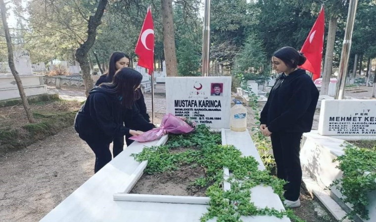 Manisa’nın Sarıgöl ilçesinde 24 Kasım Öğretmenler Günü dolayısıyla Sarıgöl İlçe Milli Eğitim Müdürlüğü Şube Müdürü Yüksel Kanyılmaz, Sarıgöl Mesleki ve Teknik Anadolu Lisesi Müdürü Ali Altıntaş, Müdür Başyardımcısı Neslihan Mert Tanrıkulu, Müdür Yardımcısı Birsen Tuzlu ve öğrencilerle birlikte Şehit Öğretmen Mustafa Karınca’nın mezarını ziyaret ederek hem dua ettiler hem de mezarını çiçekle süsleyerek unutulmadığını gösterdiler.