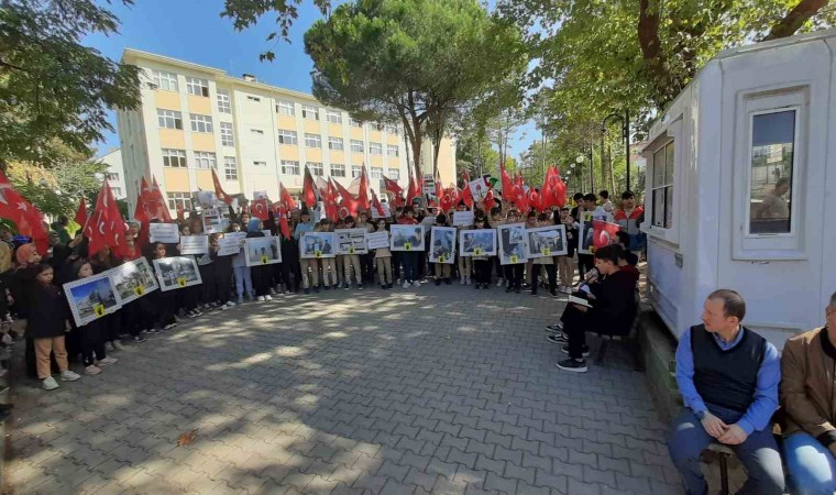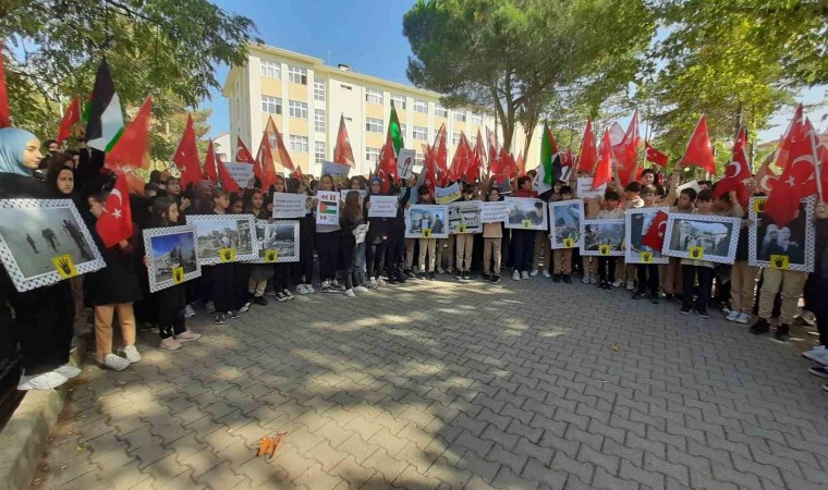 Bilecik’in Osmaneli ilçesinde Şehit Osman Er İmam Hatip Liseai öğrencileri Gazze saldırılarına tepki gösterdi.