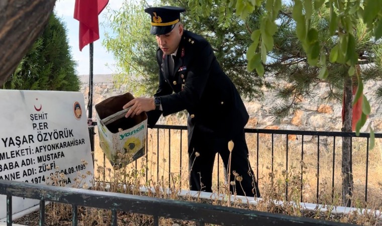 Afyonkarahisar’ın Bolvadin ilçesinde jandarma personeli şehit Piyade Er Yaşar Özyörük’ün ailesini ve kabrini ziyaret etti.