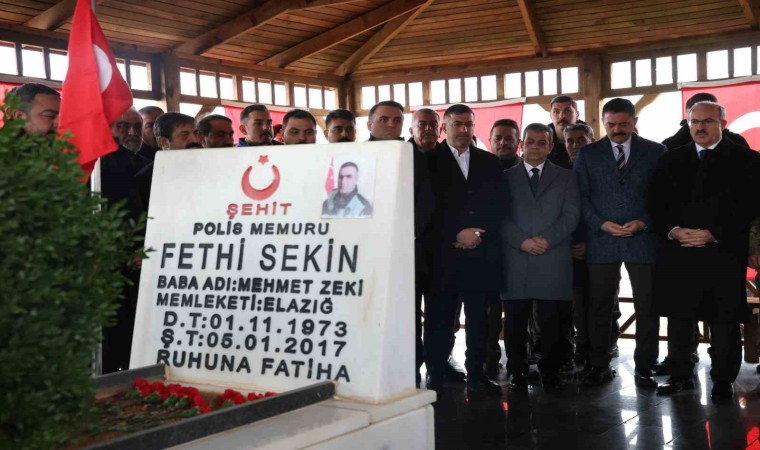 İzmir’de 7 yıl önce adliye önünde PKK’lı teröristlerle kahramanca mücadele ederek şehit düşen polis memuru Fethi Sekin, memleketi Elazığ’da kabri başında anıldı.