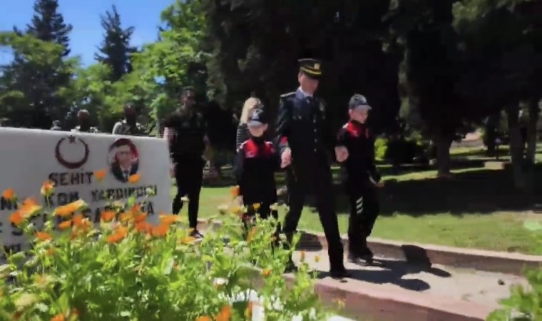 İki kardeş babalarının ölümünün 1. yılında polis üniforması giydi. Daha sonra iki kardeş polislerin eşliğinde şehitliğe götürüldü. İl Emniyet Müdür Yardımcısı Fatih Bölükbaşı, meslektaşları ve iki kardeş Sarıkaya’nın kabrine karanfil bırakıp dua etti.