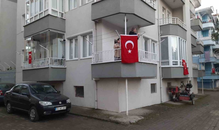 Isparta’da meydana gelen helikopter kazasında şehit olan Samsunlu Teğmen Tunahan Dağlı’nın(24) baba evine Türk bayrağı asıldı.