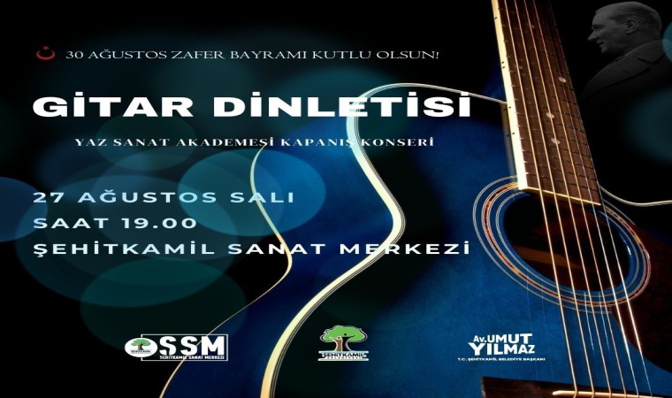 Şehitkâmil Belediye Başkanı Umut Yılmaz, 30 Ağustos Zafer Bayramı kapsamında bir haftaya yaydıkları kültürel ve sportif etkinliklerle bayramı şölen havasında yaşatacaklarını söyledi. 4 gün sürecek müzik kapsamında Şehitkamil Sanat Merkezi’nde 27 Ağustos’ta gitar, 28 Ağustos’ta keman, 29 Ağustos’ta da bağlama ve ut konseri düzenleyeceklerini duyurdu.