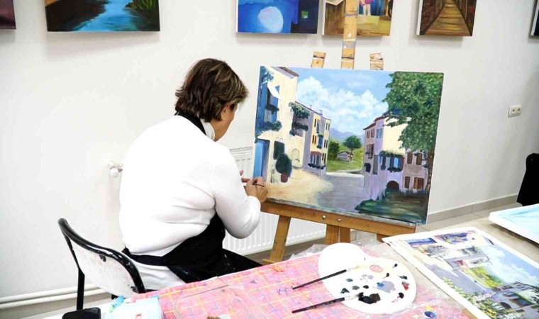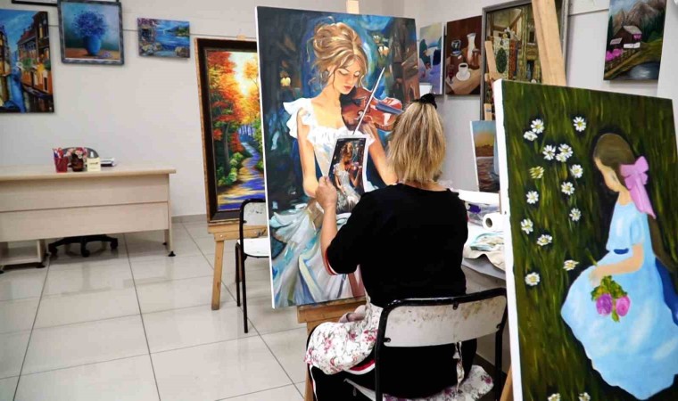 Açılan resim kursuna ilişkin açıklamada bulunan Hanımlar Lokali Resim Kursu Eğitmeni Ferah Güneş, “2023-2024 eğitim yılına önceki aylarda başladık. Şu anda 50 kursiyerimize eğitim veriyoruz. 3 grubumuz var. Haftanın 5 günü olmak üzere 3 gruptan oluşan 50 kursiyerimize eğitim veriyoruz. Şu anda burada yağlı boya resim eğitimi veriyoruz. Buraya gelen arkadaşlarla beraber çok güzel vakitler geçiriyoruz, aynı zamanda üretiyoruz. Bunun yanında kursiyerlerimiz, yaptıkları tabloları satarak aile ekonomisine de katkı sağlayabiliyorlar. Bunun yanında kursiyerlerimiz, burada günün stres ve sıkıntısını da atabiliyor. Bizler de eğitmenler olarak, kursiyerlerimize elimizden geldiğince katkı sunmaya çalışıyoruz. Bu eğitim-öğretim yılının sonunda 180’e yakın eserle resim sergilerimizi açacağız” ifadelerini kullandı.