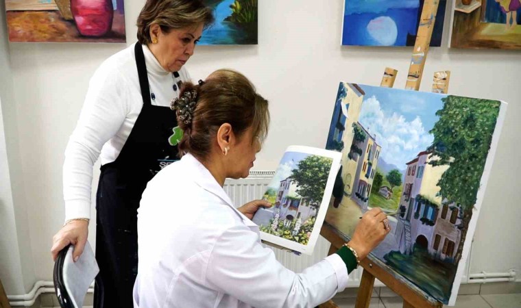 Hanımlar Lokali Aile Merkezi’nde açılan resim kursuna katılan kadınlar, kursta eğitim görerek resim yapmayı öğreniyorlar. Yağlı boya ve sulu boya çalışmaları yapan kursiyerler, 6 aylık eğitimin ardından çok başarılı eserler üretiyorlar. Ayrıca kursiyerler, burada yapmış oldukları resimleri hem satarak aile ekonomisine katkı sağlıyor hem de yakın dostlarına hatıra olarak hediye ediyor. Bunun yanı sıra kursa katılan kadınlar, günün stres ve sıkıntısını resim yaparak atıyor, gönüllerince eğleniyorlar.