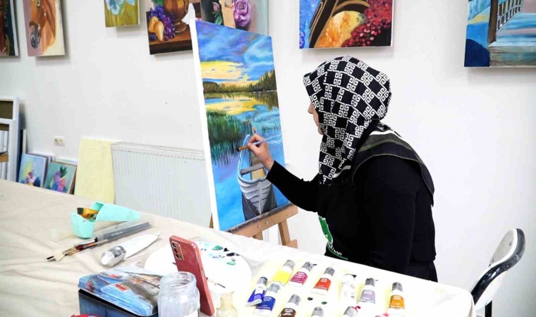 Şehitkamil Belediyesi tarafından Hanımlar Lokali Aile Merkezi’nde açılan resim kursuna katılan kadınlar, kursta eğitim görerek resim yapmayı öğreniyorlar. Kursa katılan kadınlar hem eğitim görüyor hem de yapmış olduğu birbirinden güzel resimleriyle ressamlara taç çıkartıyor.