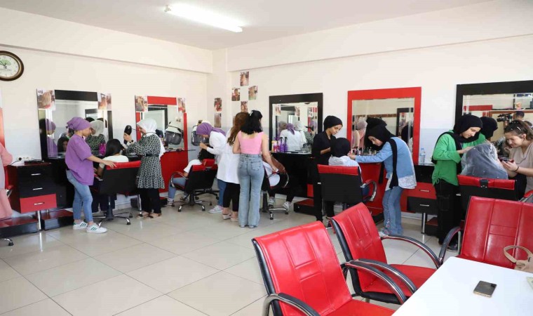 Şehitkamil Belediyesi'nin Münifpaşa Aile Merkezi'nde düzenlenen 'bayan kuaförlüğü' kursu, ev kadınları ve genç kızlar arasında büyük ilgi görüyor. Belediye ile Merveşehir Halk Eğitim Merkezi Müdürlüğü işbirliğiyle düzenlenen kurs, teorik ve uygulamalı olarak saç kesimi, boya, perma, röfle, gelin saçı, türban bağlama, fön, topuz, makyaj ve epilasyon gibi kuaförlük eğitimlerini içeriyor. Eğitimlerin ardından sertifika alan kursiyerler, geleceğe daha güvenle bakabiliyorlar.