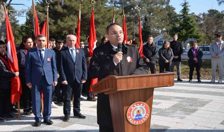Konuşmanın ardından Garnizon Şehitliği Büstü’ne çelenk sunumu yapıldı. Kaymakam Cevdet Ertürkmen şehitlik defterini imzalayarak, "Şehitlerimiz, Türk milletinin milli varlığını sürdürmek için vatan, millet, istiklal, hürriyet, insanlık ve barış ülküsü uğruna canlarını feda ettiler. Vatan ve bayrak uğruna toprağa düşen aziz şehitlerimiz! Sizleri bizden ayıran ecel, kalplerimizi asla ayıramayacaktır. Kutsal emanetiniz olan Türk vatanı ilelebet hür kalacaktır. Şehitlerimizin aziz hatıralarını yüreğimizde taşımak ve yaşatmak, onların emaneti olan değerli ailelerine sahip çıkmak, onların acılarını, üzüntülerini ve sorunlarını paylaşmak bizlerin üzerine düşen milli bir görev, görevin ötesinde de bir vefa borcudur" diye konuştu.