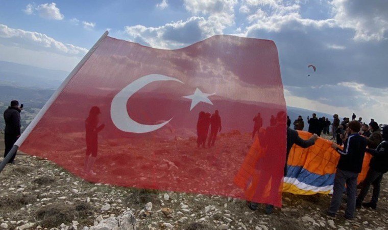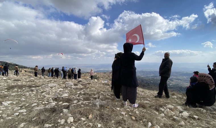 Türk Hava Sporları Federasyonu Kahramanmaraş ve Gaziantep İl Temsilciliklerine bağlı paraşütçüler, Pazarcık’ın Büyük Nacar Köyü’nde 1650 rakımlı Kürdelen Tepesi’nde bir araya gelerek şehitler, depremde hayatını kaybeden vatandaşlar ve Maraş’ta 1920 yılında Milli Mücadele’nin fitilini ateşleyen kahramanların anısına saygı atlayışı gerçekleştirdi.