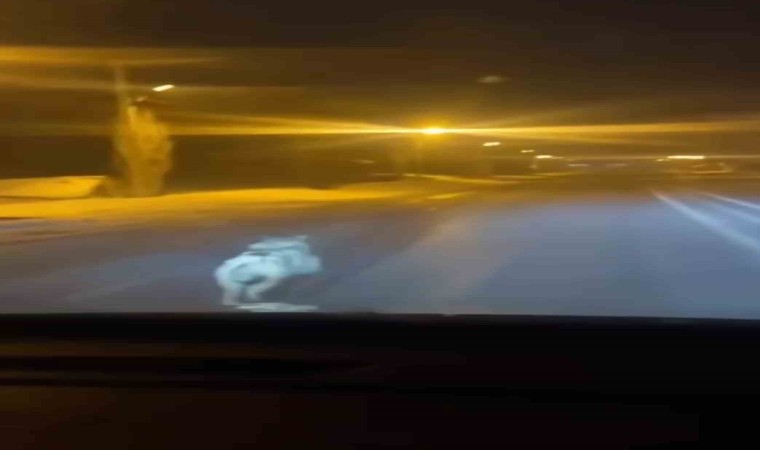 Hakkari’nin Yüksekova ilçesine bağlı Vezirli Mahallesi’ne inen kurdu aracıyla kovalayan bir kişi, o anları cep telefonuyla görüntüledi.