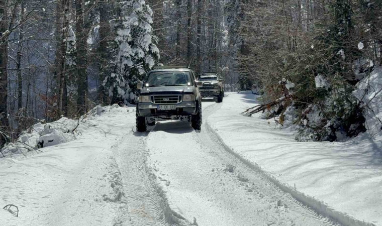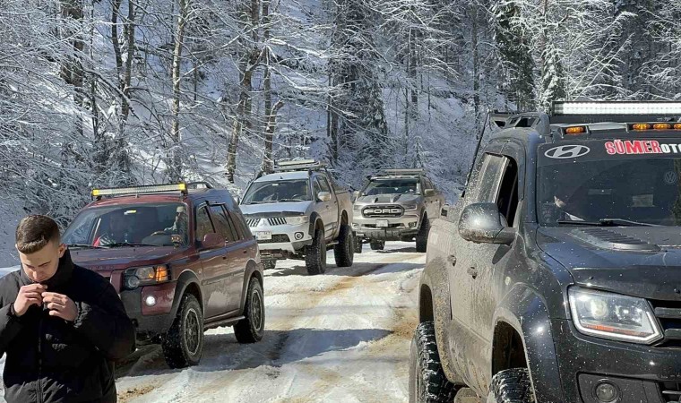 Düzce’de kış aylarında şehre kar yağmayınca üniversite öğrencileri karla buluşmak için yaylalara Off-Road araçları ile çıkarak karla buluştu.