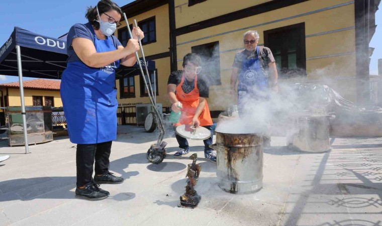 2’si yabancı 10 sanatçının katıldığı Seramik Pişirim Teknikleri Çalıştayı’nda çalışmalar, Odunpazarı Belediyesi Şehrin Ateşi Seramik Galerisi’nde gerçekleşiyor. Prof. Dr. İnayet Sevim Çizer’in onur konuğu olduğu çalıştayda, seramik sanatçıları bir birinden güzel ve eşsiz eserlere imza atıyor. Şehrin Ateşi Seramik Galerisi’nin bulunduğu Arasta El Sanatları Çarşısı’nın avlusuna çeşitli pişirim tekniklerinin uygulandığı fırınlar kuruluyor. Çalıştay çerçevesinde bu güne kadar Macun Lüsteri ve Raku Pişirimleri yapıldı. Çalışmalarını Odunpazarı Meydanı’na kurulan dev çadırda sürdüren Ahşap Heykel Festivali’ne ise 2’si yabancı 9 sanatçı katılıyor. Bu yıl, genellikle oyma üzerine ve küçük eser çalışan sanatçıların, eserleri de şekillenmeye başladı.