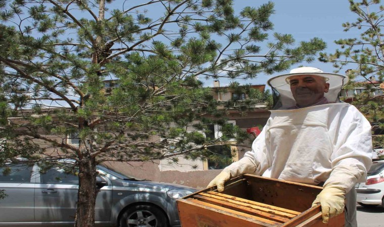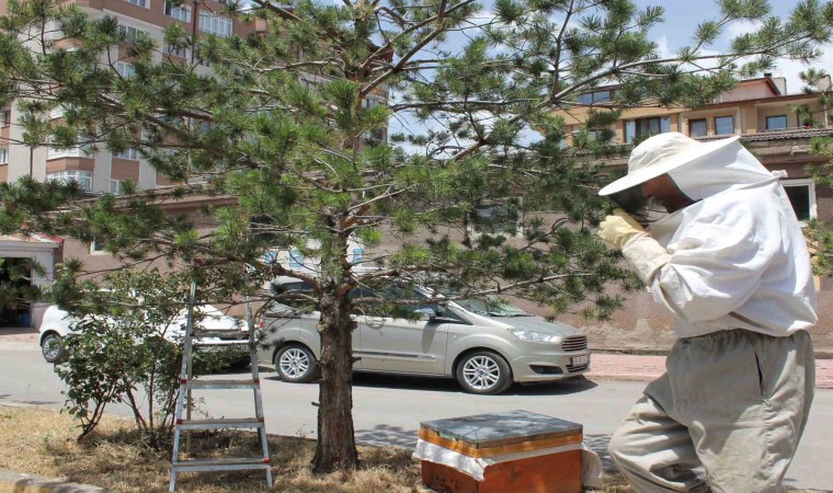Sivas’ta şehir merkezinde oğul veren bir arı sürüsü ilgi odağı oldu, tecrübeli gazeteci başarılı operasyonla arıları kovana yerleştirdi.