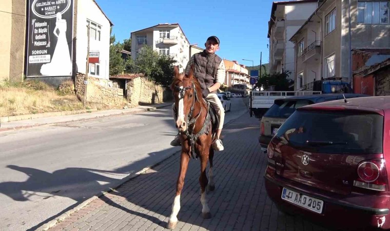 Yozgat merkezde atlara olan sevgisi sebebiyle cadde ve sokaklarda atıyla turlayan Furkan Özdemir, vatandaşların da ilgi odağı oldu.