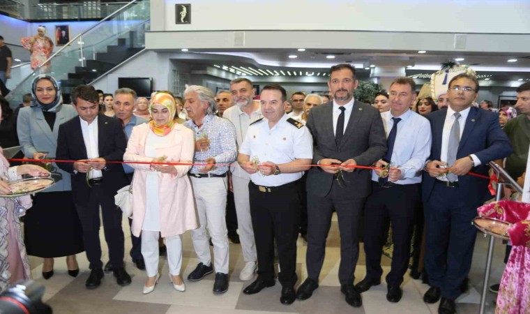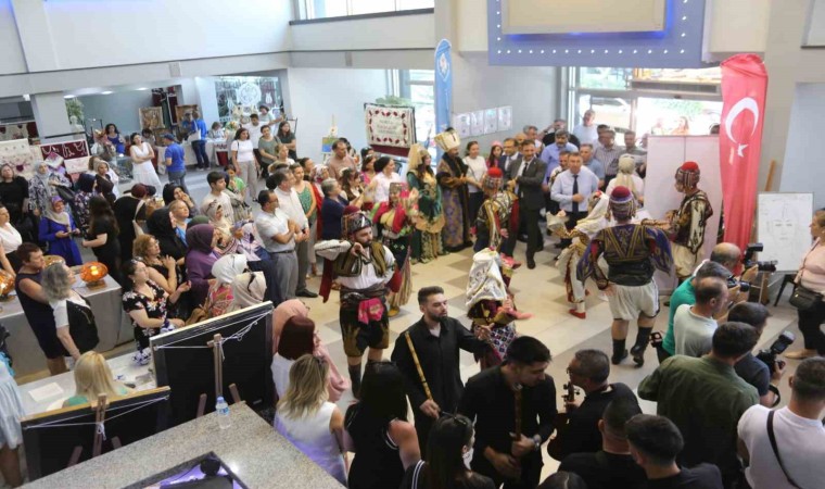 Lale Salonu girişinde Şehzadeler Halk Eğitimi Merkezi zeybek ekibinin gösterisi ardından açılış kurdelesi törene katılan protokol üyeleri tarafından kesilerek kursiyerlerin eserlerinin yer aldığı sergi gezildi.