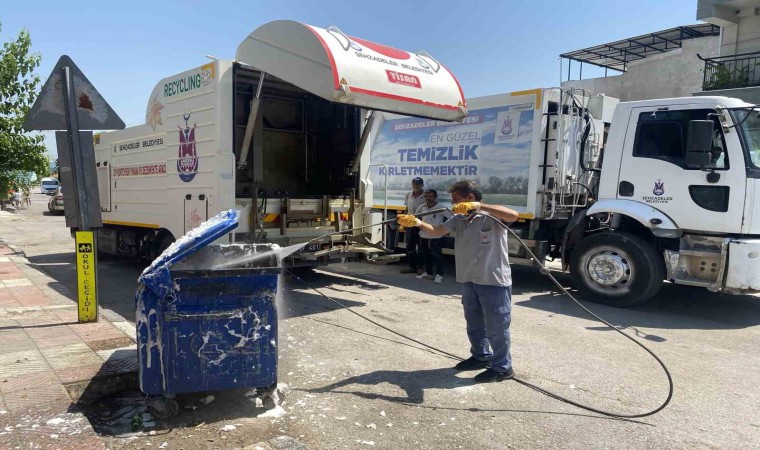 Şehzadelerde çöp konteynerleri dezenfekte ediliyor
