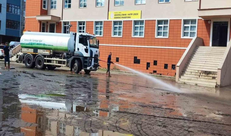 Büyükşehir Belediyesi’nden yapılan açıklamada, ilçelerde okulların eğitime hazır hale getirildiği vurgulanarak, "İlçelerimizde meydana gelen sel, heyelan ve su taşkınlarının ardından harekete geçen ekiplerimiz, büyük bir gayretle çalışmalarını sürdürüyor. İlçelerimizde hayat büyük oranda normale döndü, kalan aksaklıklar da en kısa sürede giderilecek. Bunun için ekiplerimiz, ilçe belediyelerimiz ve kamu kurumlarımızla seferberlik halindeyiz. Vatandaşlarımız olumsuz bir durum yaşadıklarında, Trabzon İletişim ve Koordinasyon Merkezi’nin (TİKOM) Alo 153 hattından bizlere ulaşabilirler” denildi.