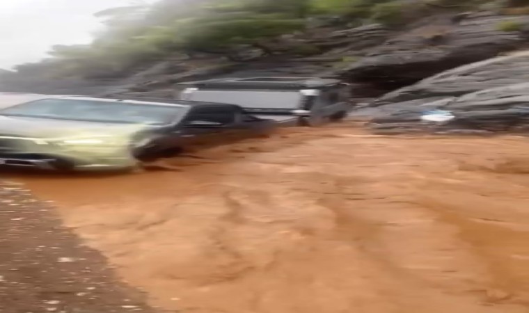 Muğla’nın Ortaca ilçesinin dünyaca ünlü Kargıcak Koyu’nda sağanak nedeniyle yüksek kesimlerden inen su, sele neden oldu. Tatilcilere ait 3 kamyonet ve 2 karavan ise sel sularına kapılıp metrelerce sürüklendi.