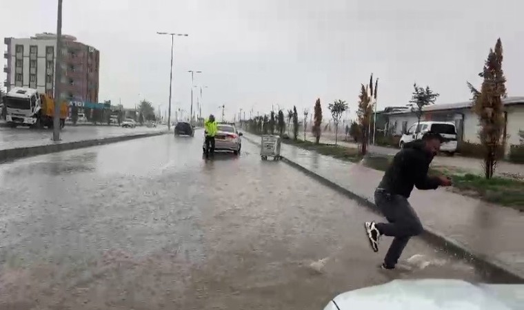 Yağışların etkili olduğu Adıyaman’da, sel sularından dolayı göle dönen yolda su içerisinde çırpınan serçe, habere giden İHA muhabiri tarafından kurtarıldı.