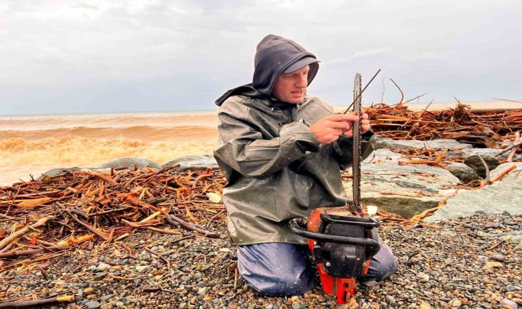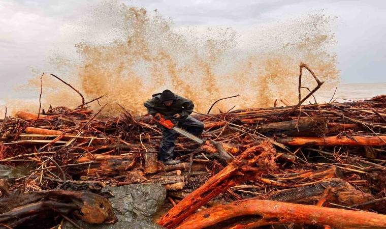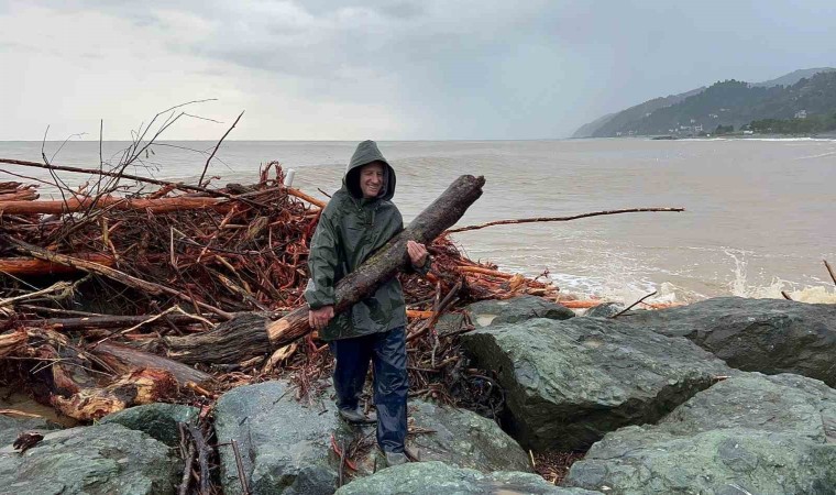Rize’de dün yaşanan şiddetli yağışlar sonrası oluşan seller ile birlikte derelerin getirdiği odun ve kütük parçaları denize ulaşırken, yöredeki vatandaşlar kışlık yakacaklarını temin etmek için Karadeniz Sahili’ni doldurdu.
