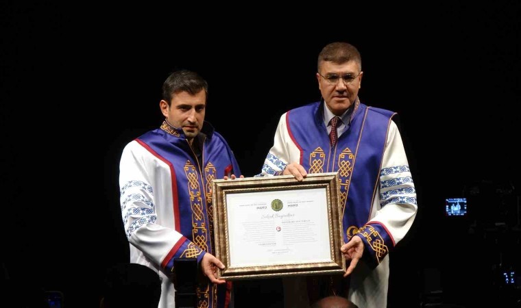 Konuşmalarının ardından Selçuk Bayraktar’a MAKÜ Rektörü Prof. Dr. Hüseyin Dalgar tarafından Fahri Doktora unvanı, Vali Tülay Baydar Bilgihan tarafından ise ödül beratı takdim edildi. Selçuk Bayraktar, Rektör Dalgar ve Vali Bilgihan’a Akıncı maketi hediye etti.