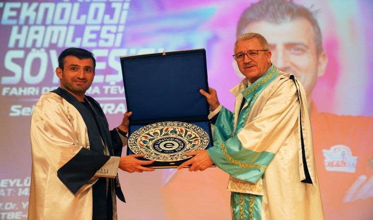 Ege Üniversitesinde “Milli Teknoloji Hamlesi” serüvenini anlatan BAYKAR ve TEKNOFEST Yönetim Kurulu Başkanı Selçuk Bayraktar’a ’Fahri Doktora’ ünvanı verildi.