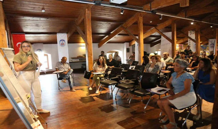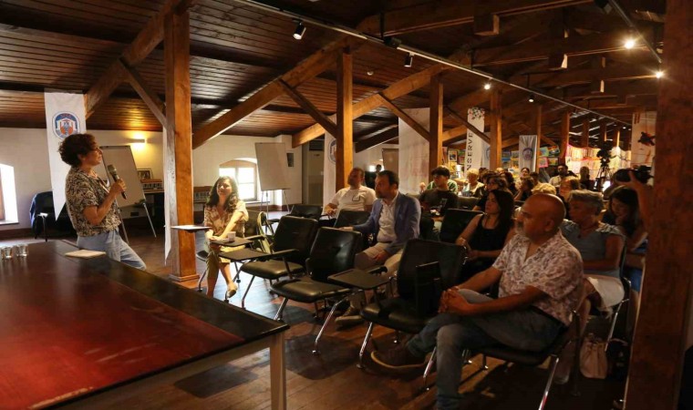 Çalıştayın başında Selçuk Kent Belleği Sorumlusu Tolga Mert kentte geçmişten bugüne kültür sanat faaliyetlerinin yanı sıra Selçuk Kent Belleği ile ilgili katılımcılara bilgi verdi.