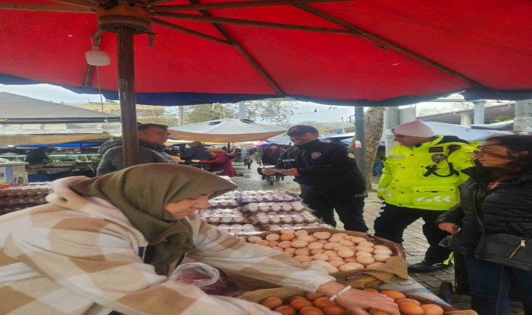 Selçuk İlçe Emniyet Müdürlüğü ekipleri, halk pazarında vatandaşlara ve pazarcı esnafına yönelik uyarı ve bilgilendirme çalışması gerçekleştirdi.
