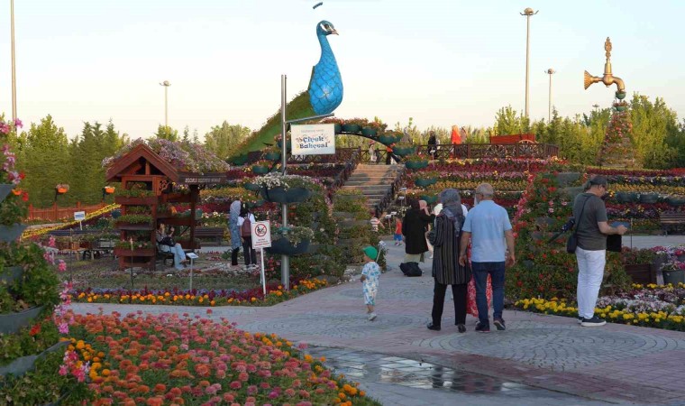Kelebek Parkı içerisinde toplam 11 bin 500 metrekare alanda 27 tür 65 çeşitle birlikte 400 bin çiçeğin yer aldığı bahçe kendine özgü konsepti ile dikkat çekiyor. Türkiye’de ilk kez bu konsepte yapılan bahçede özel mevsim çiçeklerinin yanı sıra Selçuklu Motifinden takılar, yürüyüş yolları, kamelyalar, seyir tepesi, çocuk oyun alanları ve hatıra köşesi bulunuyor. Bahçe bu yıl çiçeğin yanı sıra tavus kuşu, sülün, süs tavuğu ve güvercin gibi kuş türlerine de ev sahipliği yapıyor.
